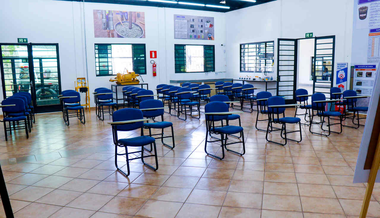 O espaço conta com uma sala de aula equipada e interativa, além de uma área externa que simula uma praça de sondagem, onde os alunos vivenciam situações reais de operação.